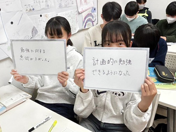 テストを受けるのも、そのための準備をするのも子ども達自身です。だから、定期テストに向けての取り組みに関しても、子ども達の考えや個性を尊重した取り組みをしてもらうように心がけています。