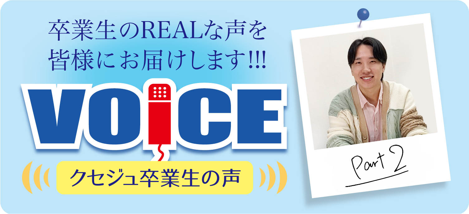 クセジュの卒業生にインタビューをして、「学生時代にクセジュを選んだ理由」や「クセジュに通っていた頃の思い出」を語ってもらうこの企画、「VOICE –卒業生の声–」。